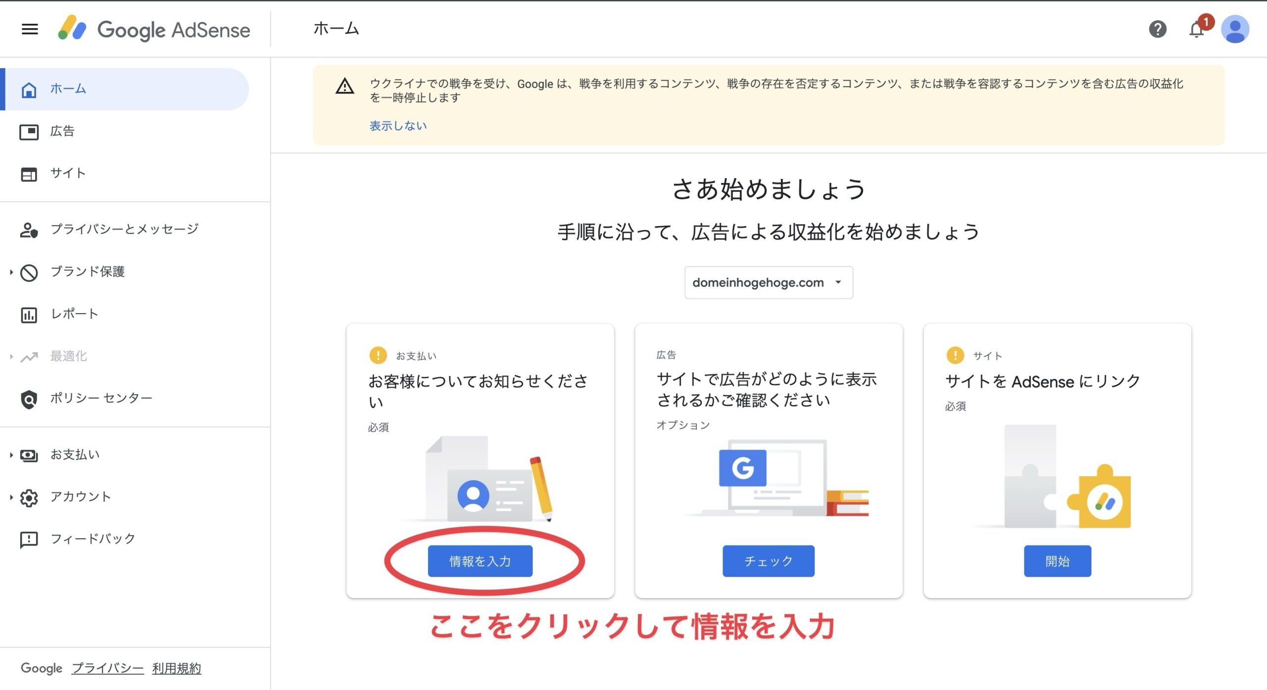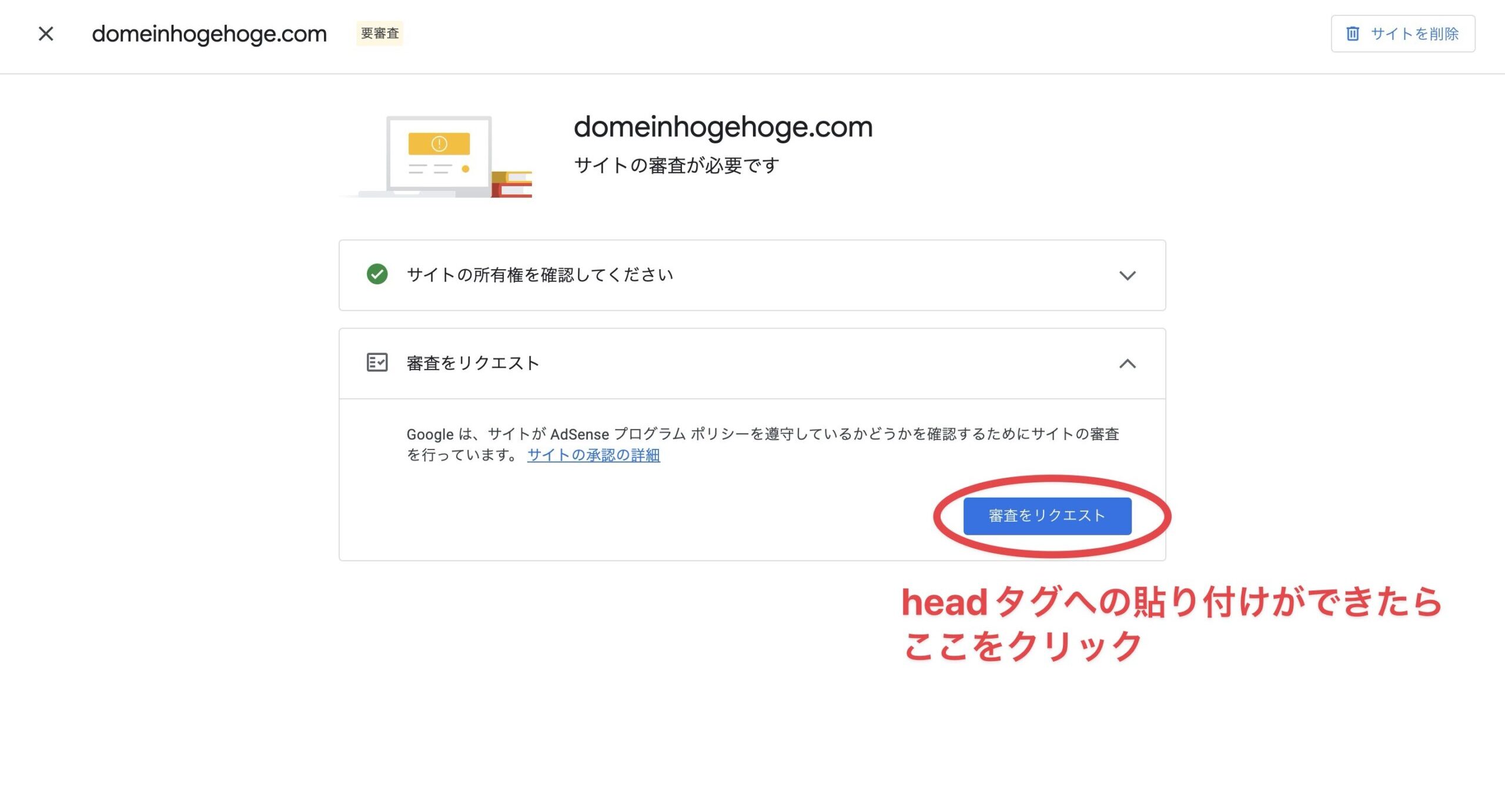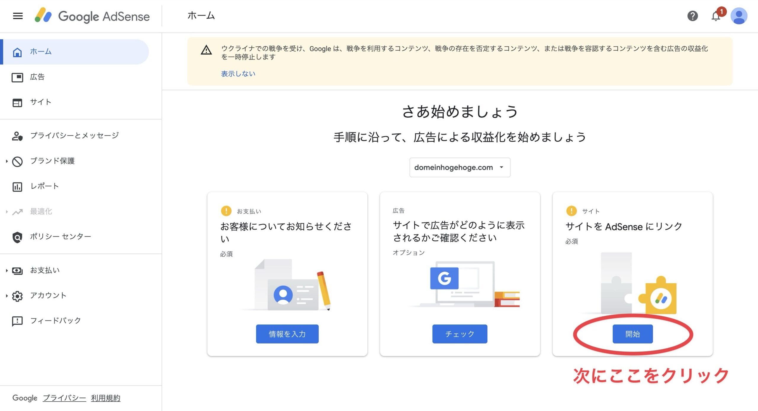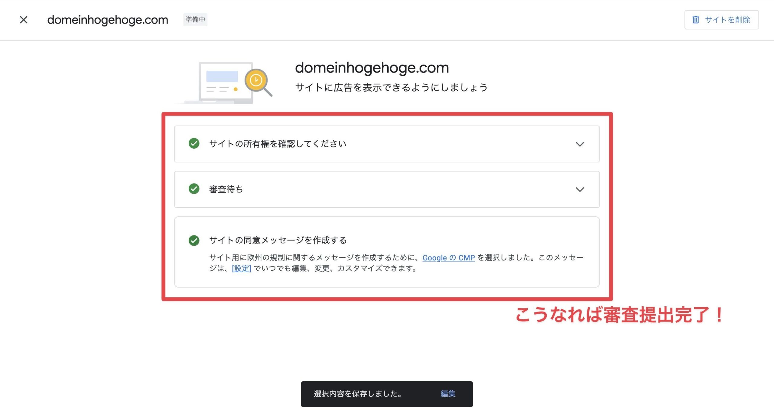 これで、「サイトをAdSenseにリンク」の②の作業が完了です。